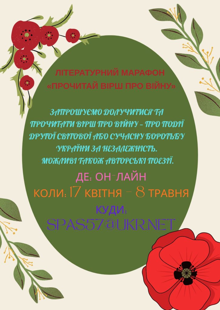 До Дня пам’яті та примирення, вшановуючи жертв Другої світової війни, запрошуємо долучитися до літературного марафону, що триватиме з 17 квітня по 8 травня.
