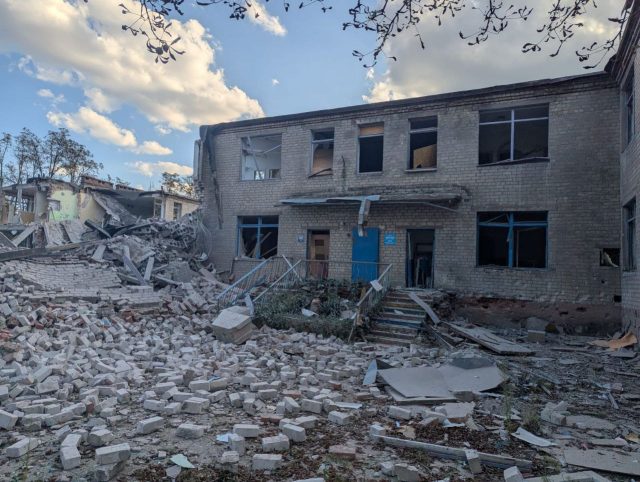 Покровський район. У Добропіллі пошкоджено адмінбудівлю.
