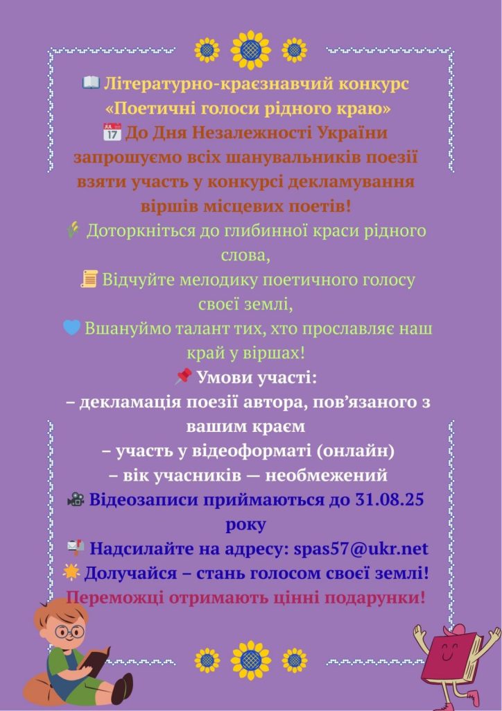 Це чудова нагода поділитися своєю любов’ю до рідного краю через поетичне слово, познайомитися з творчістю інших та зміцнити міжгромадську єдність.