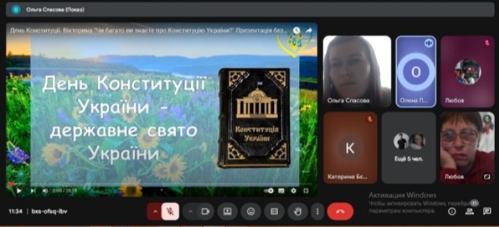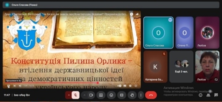 Бібліотека для дітей ім. Т. Г. Шевченко Публічної бібліотеки Лиманської громади при активній участі користувачів і колег провела відеоекскурс “Вимір історії часу” (до Дня Конституції України). Цікаву і насичену інформацію про часи створення і прийняття основного документа присутні дізналися з документального фільму ” Конституція України “. Ознайомилися з відео “Конституція України для дітей (Просто і зрозуміло про Конституцію) і Загальною декларацією прав людини ООН” Що таке права людини? “. Участь у вікторині до Дня Конституції України надала змогу перевірити базові знання з цієї теми.