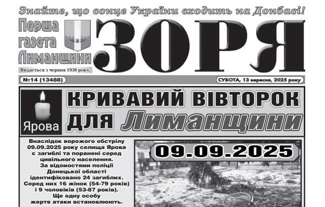 Вийшов у світ черговий номер газети “Зоря” № 14, у котрому відображено життя Лиманщини як воно є на сьогодні: горе, біда, День міста, спорт. Читайте. Очікуємо на Ваші відгуки, запитання, співпрацю.