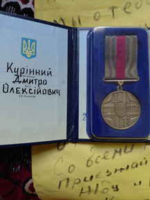 За свою службу Дмитро також був відзначений – він має нагороду, фото яку також надала Тетяна.