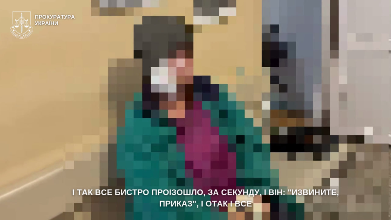 “Один так забігає. Ми до нього: ‘Що ще?’ І все так швидко було, за секунду. ‘Вибачте, наказ’, — отак, і все. Я прийшла в себе, розумію, що я жива. Дивлюсь, а всі вбиті, по стінах мізки. Думаю, син пішов за водою, його ж напевно теж вбили. Я ледве в той підвал спустилась і так, мій син там лежить, і сусідка лежить зі своїм сином вбиті“, — свідчить жінка.